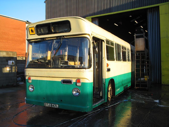 Lytham six (45-50 STJ845-850L) were bought to convert routes 1 (Lytham to St. Annes via Ansdell) and 3 (Lytham to Spring Gardens via Fairhaven and St. Annes) to OMO operation in 1972. They also ran on existing OMO routes 2 (St. Annes to Smithy Lane) and 4 (St. Annes to Lytham Green Drive) and later on the trunk 11/11A (Blackpool to Lytham) routes too. At seven years old they required an overhaul and 46 was the first treated, in early 1979. 49 missed out due to serious accident damage sustained in 1978. 46 received single door conversion from B47D to B51F arrangement. 45, 47, 48 and 50 followed suit with the last not completed until early 1981. These four received a stylish variation of blue white and yellow livery adopted once Lytham St. Annes Corporation had grown into Fylde Borough Council in 1974.